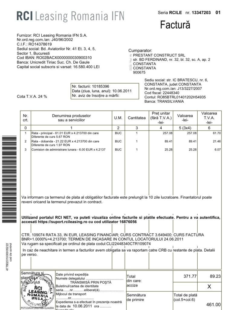 Savesave liste documente dosar leasing rci leasing romania. Exemplu de calcul reprezentativ pentru noul renault clio life sce 65 în valoare de 9.496 euro fără tva, cu avans. Leasing scania credit romania ifn s.a sebastian (leasing) srl sicaro leasing ifn s.a sky motors ifn s.a. Rci banque sa, bančna podružnica ljubljana. Date financiare şi juridice actualizate în timp real despre firmele din românia.