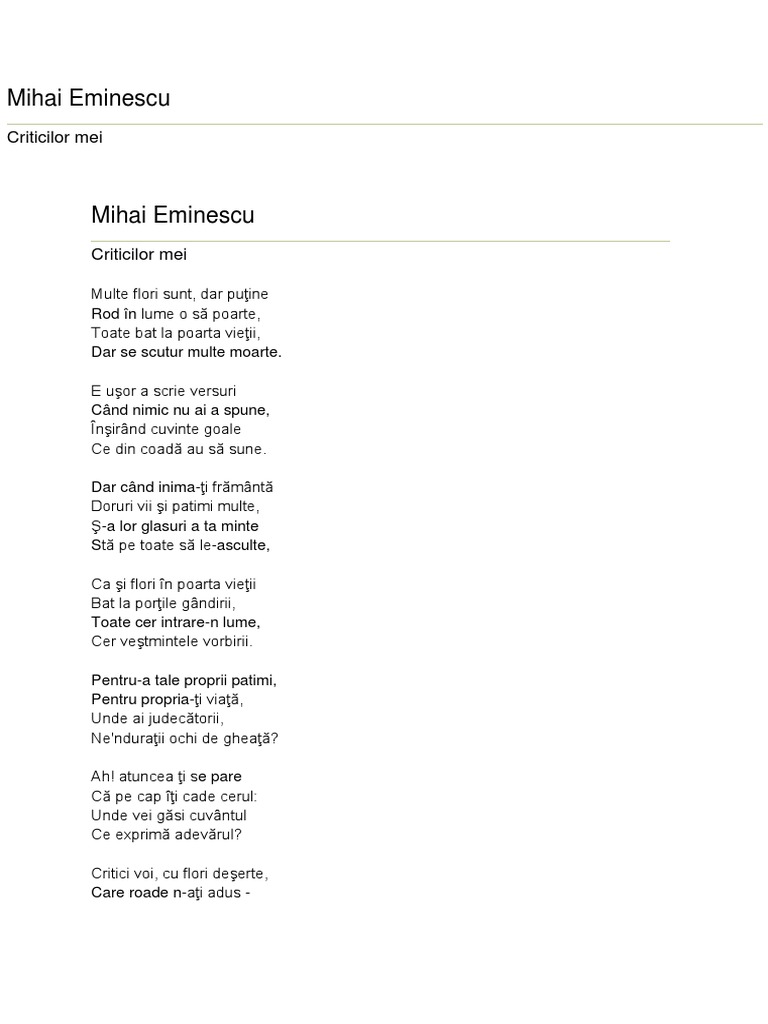 Poetul foloseste din nou metafora florilor pentru a atrage atentia criticilor ca ei nu au promovat nici o opera de valoare. Cand un autor compune o poezie sau o poveste etc. Din interes sau din prostie. e usor a scrie versuri / cand nimic nu ai a spune..