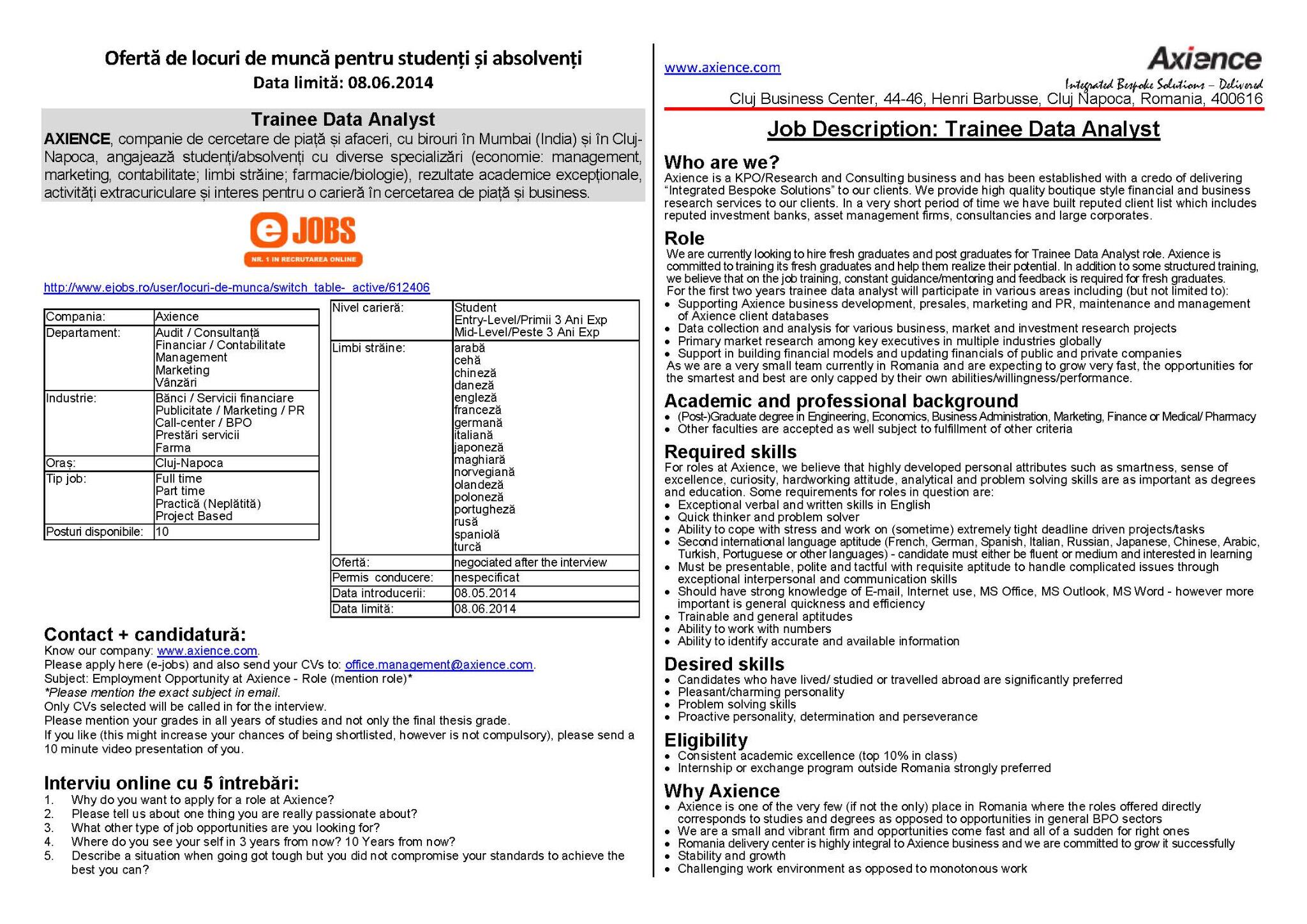 vizitati articolul complet aici : https://cariera.ejobs.ro/joburi-de-vara-2019/ Multe dintre locurile de munca din cluj destinate persoanelor cu studii superioare, sunt oferite de companii din domeniul serviciilor financiare sau it: Programul lucreaza si invata trimite cv. Este rapid și ușor de aplicat online pentru oricare dintre 4 563 recomandate studenti locuri de munca.