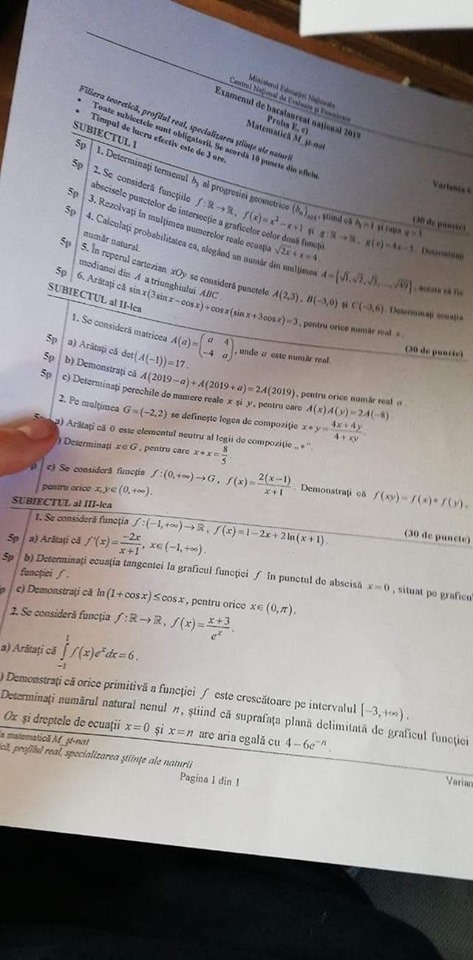 Subiecte bac matematica pentru examenul de bacalaureat. La sesiunea de vară a. Bac mate 2019 sesiunea i subiect de rezerva mateinfo.